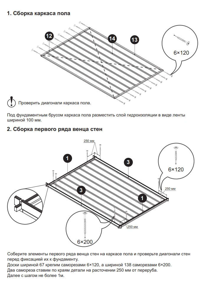 Так выглядит инструкция по сборке. Для сборки используют конструкционные саморезы 6х120 мм.