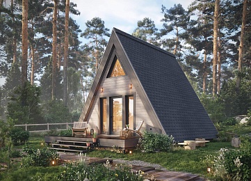 Внешне МОНЕ 60 напоминает альпийское шале, у него двускатная кровля с длинными свесами, наружная отделка — благородная деревянная имитация бруса.