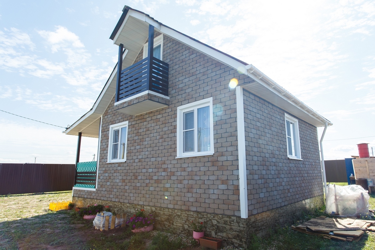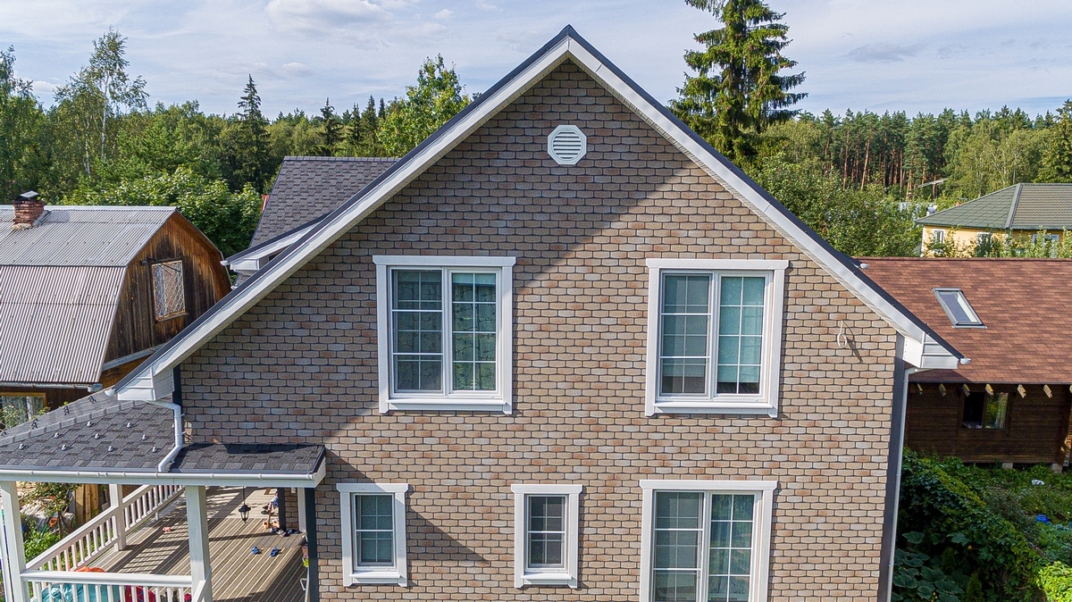 Hauberk — это гибкая фасадная плитка на основе стеклохолста, пропитанная Улучшенным битумом и покрытая базальтовым гранулятом. Она имитирует натуральную кирпичную или каменную облицовку, обеспечивая долговечность, герметичность и эстетичный внешний вид.