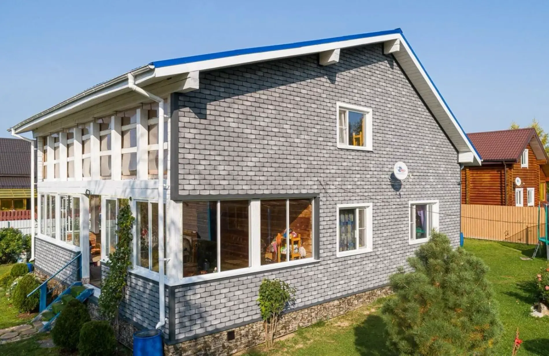 Внутри каждого стиля — разные цвета, оттенки и комбинации гранул, что позволяет создавать визуально интересный фасад.