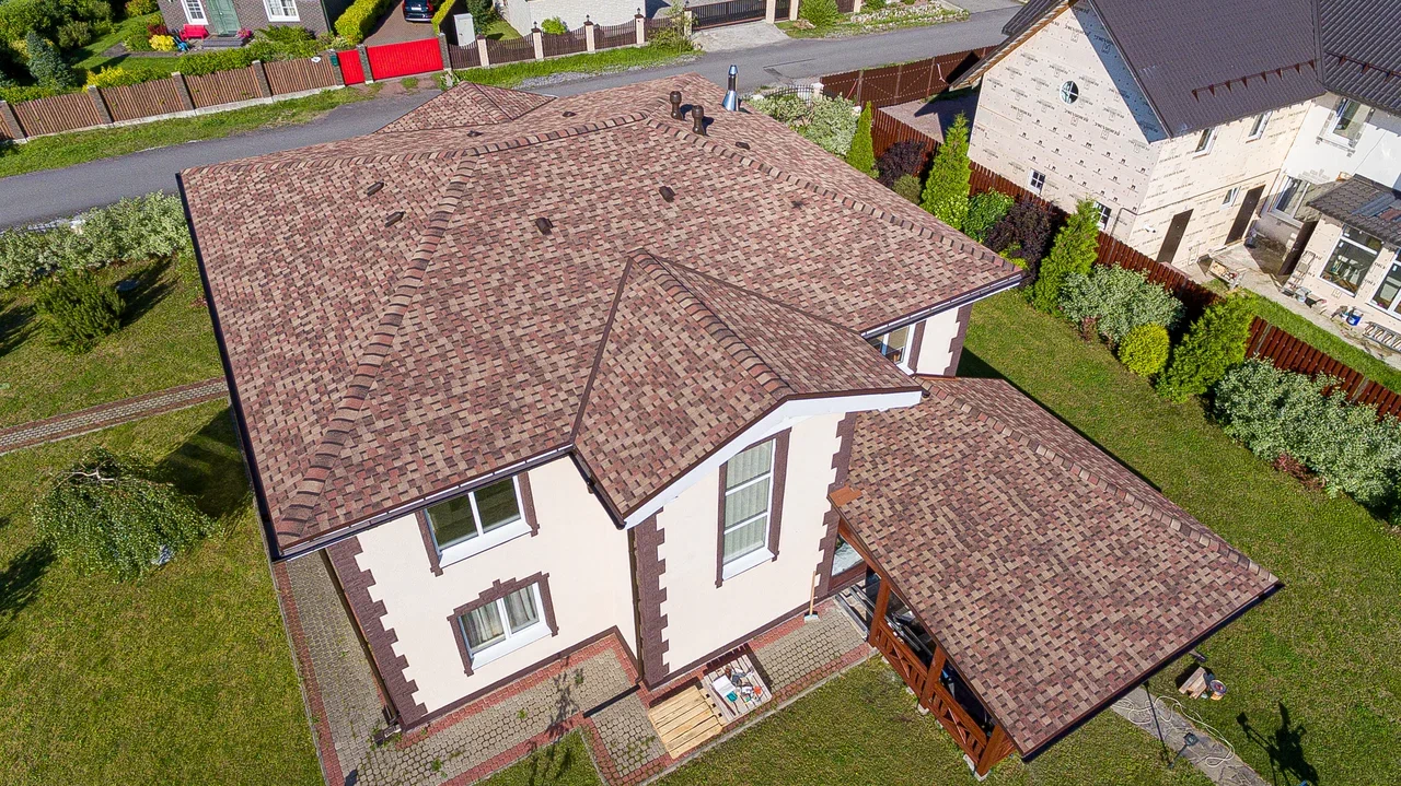 Гибкая черепица Shinglas — это штучный битумный кровельный материал, который выпускается в разных сериях и формах нарезки. Она сочетает прочность, герметичность, эстетичный визуальный эффект и адаптацию к климатическим условиям.