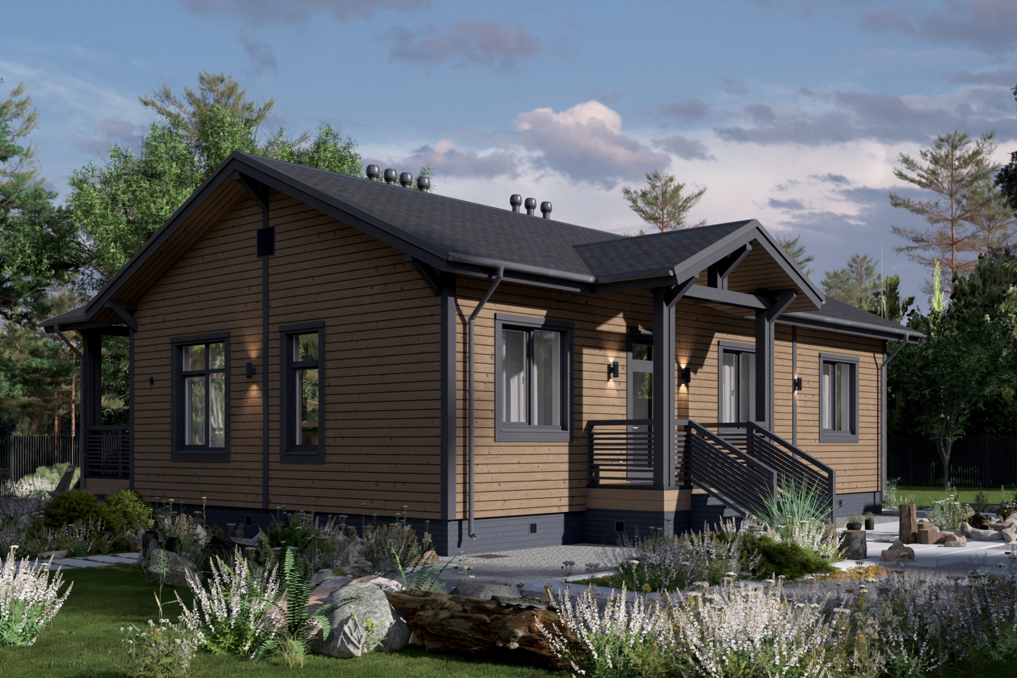 Большой и светлый каркасный дом, созданный для комфортной жизни. Вас встретит стильная прихожая, ведущая в уютную гостиную с панорамным освещением, и современная кухня, объединенная с гостиной. В доме три уютные спальни, каждая из которых — это личное пространство для отдыха, два санузла подчеркивают практичность дома, а просторная терраса станет идеальным местом для утреннего кофе.