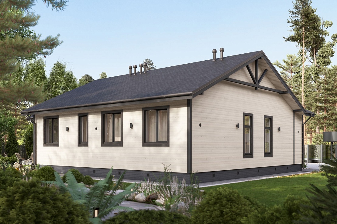 Просторная планировка включает три уютные спальни, большую гостиную с выходом на террасу, функциональную кухню-столовую и прихожую, переходящую в холл. Два санузла обеспечивают комфорт для всей семьи, а техническое помещение позволяет удобно разместить коммуникации и бытовую технику.
