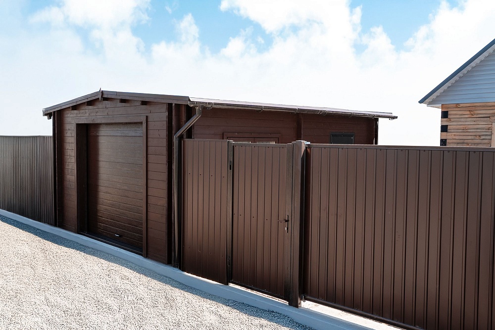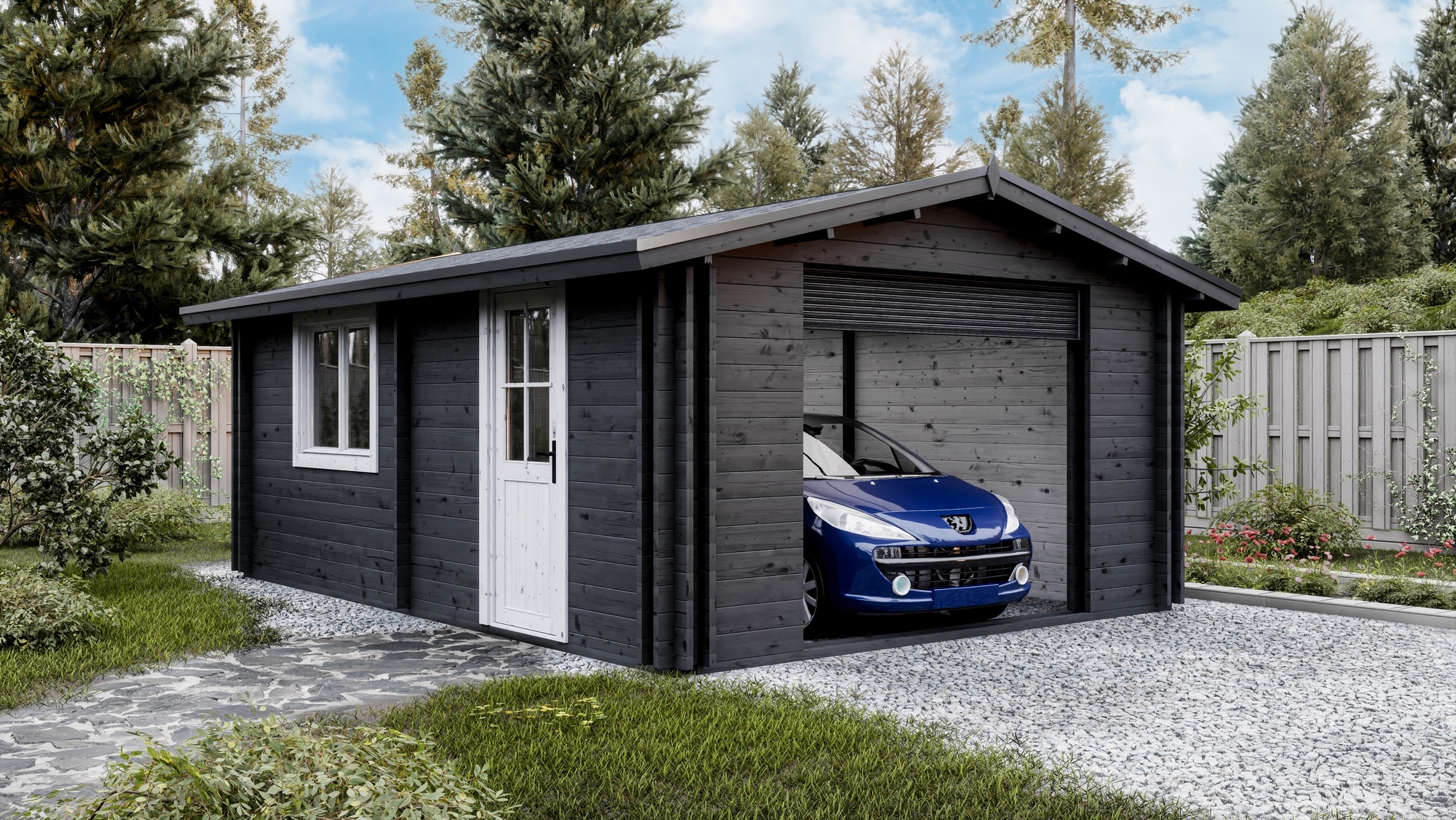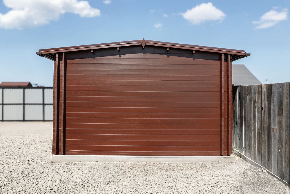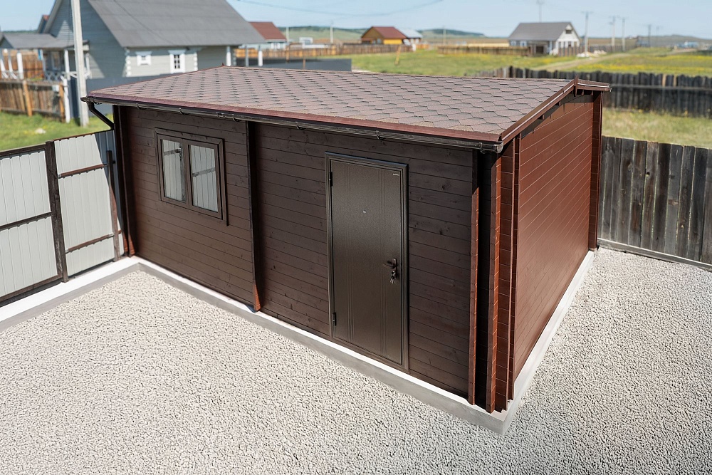 Компактный гараж 4,5×6 м, общей площадью 21 м2 рассчитан на 1 автомобиль. Стены выполнены из двойного бруса, что позволяет произвести внутристенное утепление при необходимости. Для удобства использования в гараже предусмотрено одно распашное окно и отдельный вход с дверью.