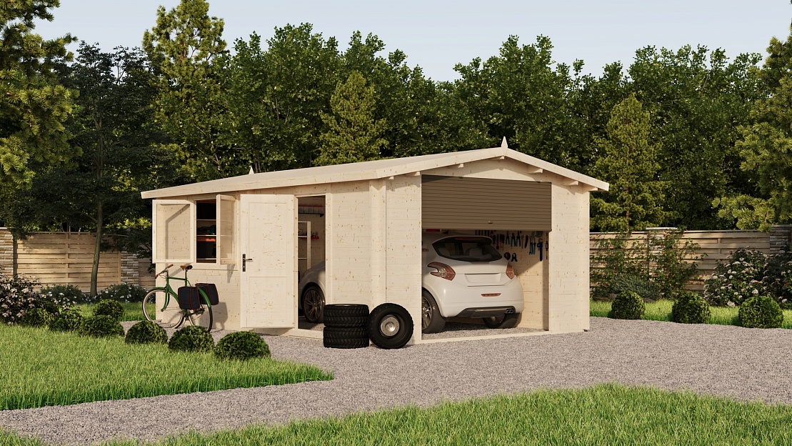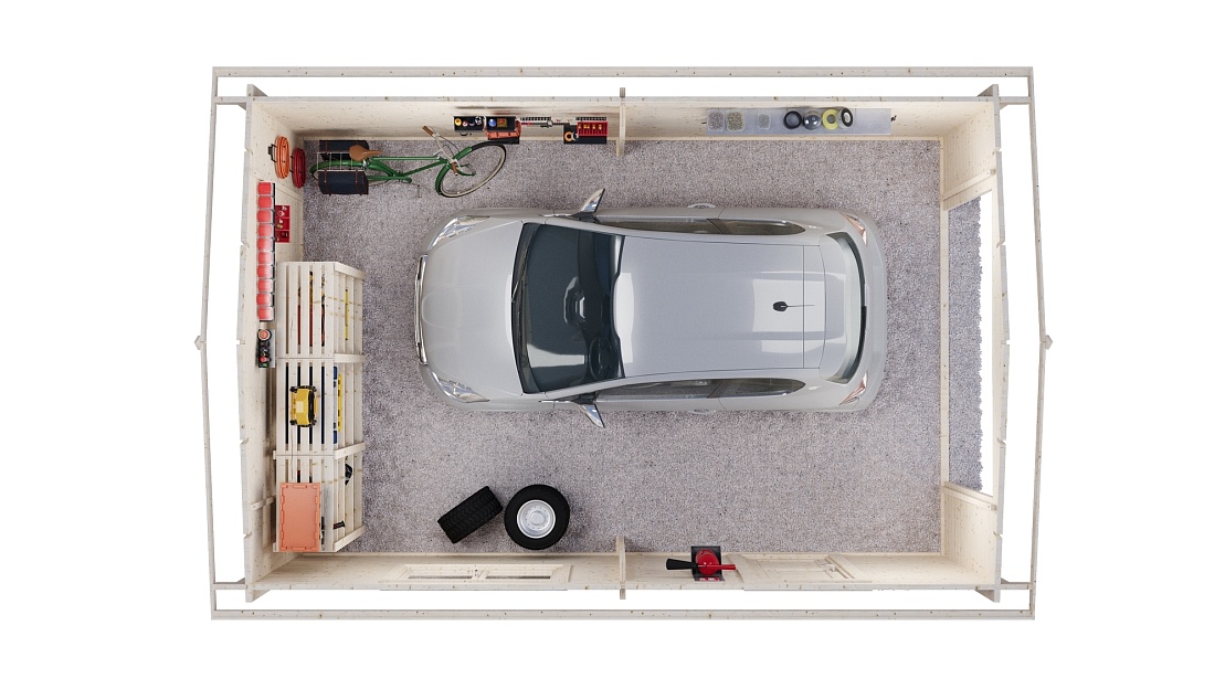 Функциональный гараж площадью 21 кв.м. Способен вместить не только автомобиль, но и обеспечить дополнительное пространство для хранения различных вещей. Гараж оборудован одним распашным окном, которое обеспечит естественное освещение в дневное время, и отдельным входом с дверью для удобства.